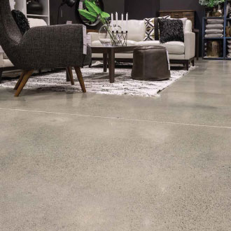 BEACH HOUSE is a classic salt & pepper diamond polished finish. It requires the removal of 1-2mm of concrete laitance to reveal the underlying fines. A lightly ground floor incorporates the natural contours of the concrete, with the addition of a resin diamond polish. Ideal for newly laid floors where placing can be controlled to achieve a flat surface.